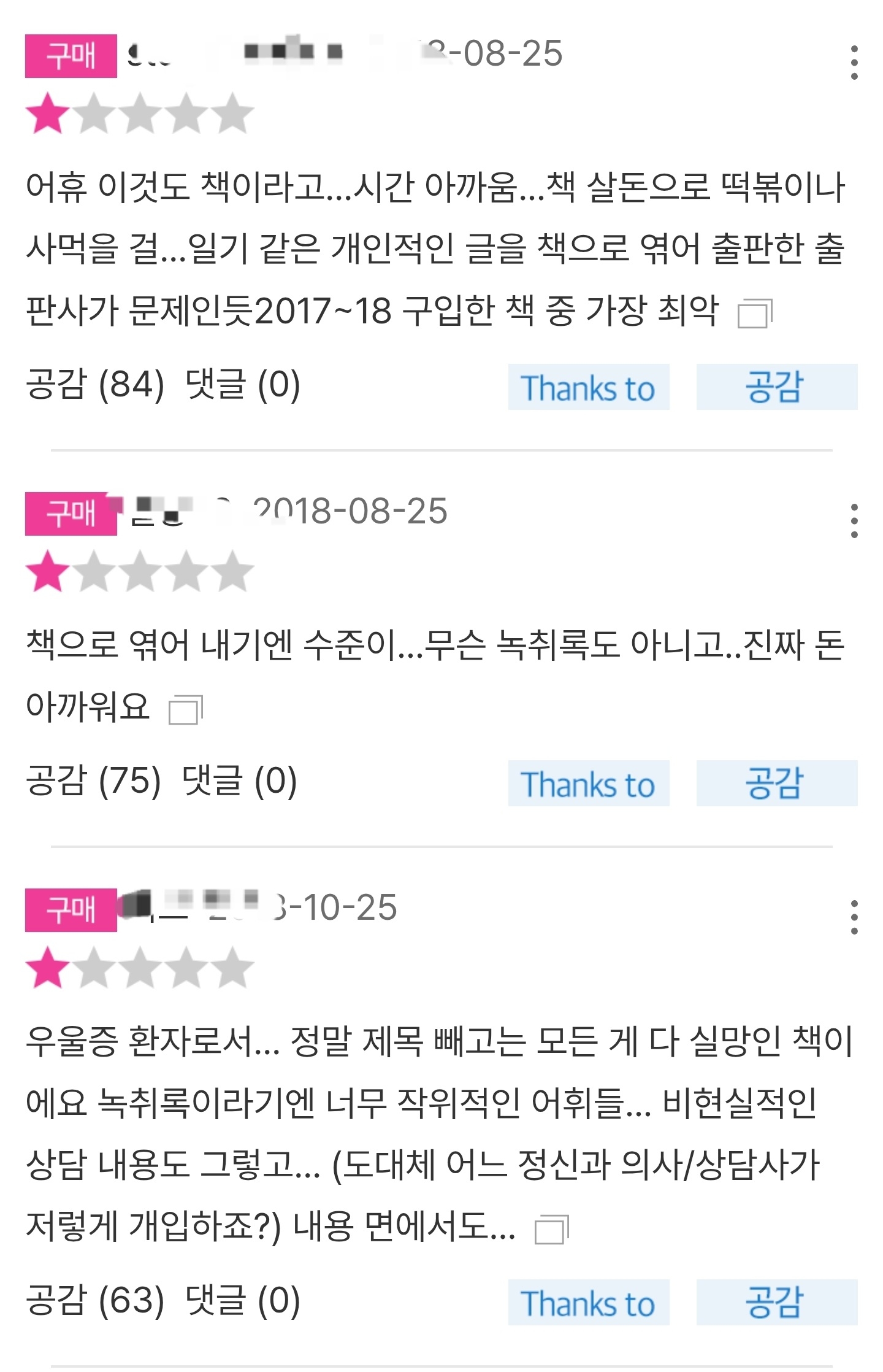 하지만, 한 온라인 서점 플랫폼에는 그녀의 책에 대해서 악평의 글들이 배설물처럼 쌓여있었다.