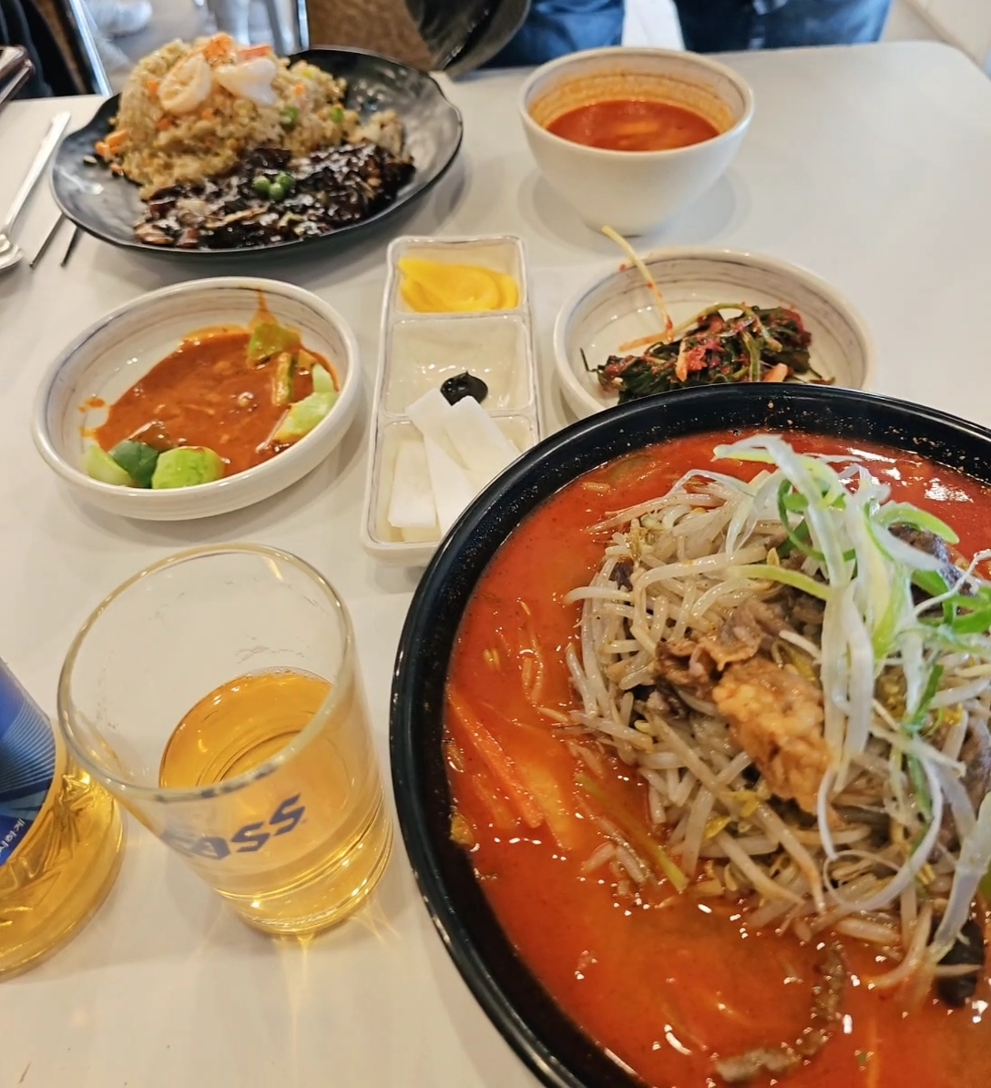 우리 일행은 숙주차돌박이 짬뽕과 왕새우 볶음밥, 그리고 윤활유와 같은 맥주 한병을 시켰다.
