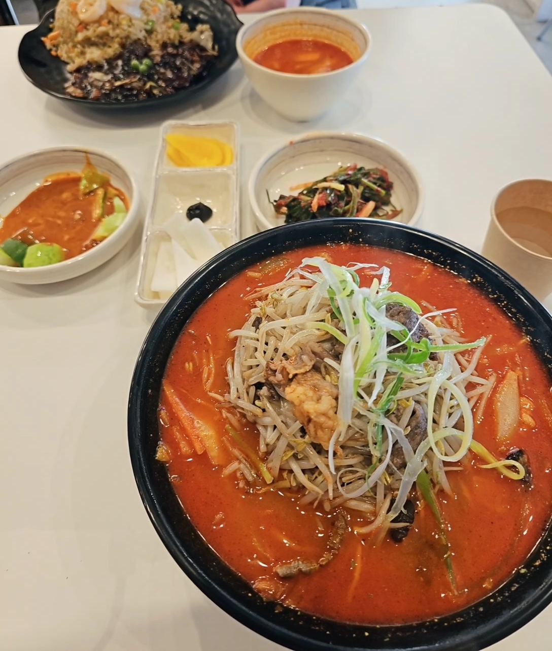곧 이어서 주문한 메뉴인 왕새우 볶음밥과 숙주 차돌박이 짬뽕이 서빙되었다.