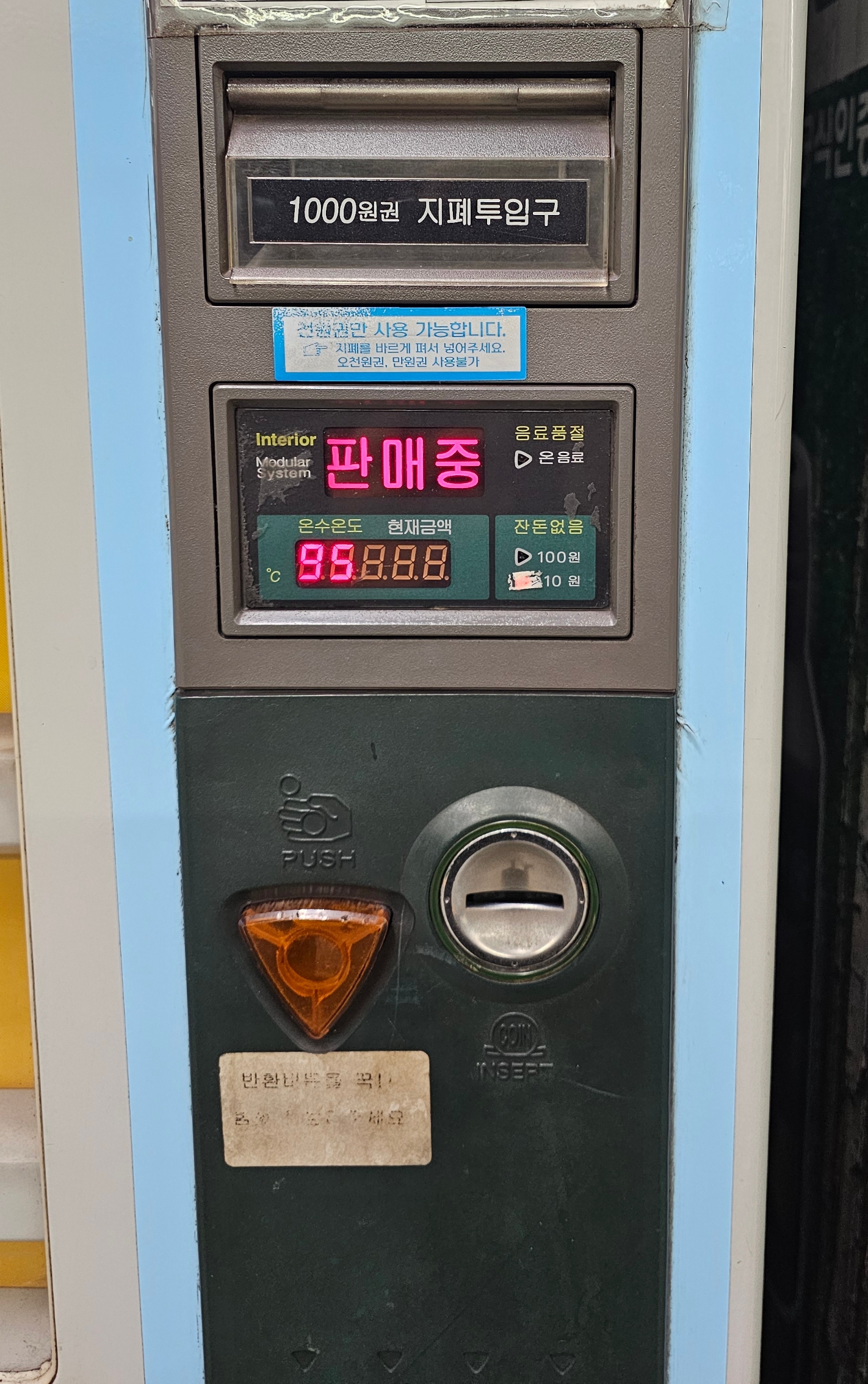 싼맛에 즐겨마시던 커피였는데 500원이라는 가격이 부담스럽게 느껴지지만, 그나마 제대로 작동을 하는 현금투입용 자판기가 보이면 나는 여전히 반가움 마음이 들면서 대학시절의 추억이 떠오른다.