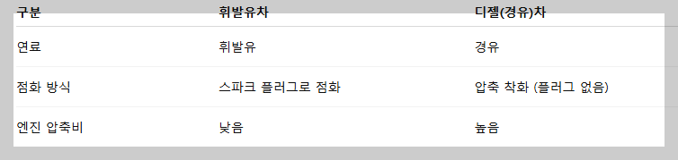 1. 연료와 엔진방식 차이